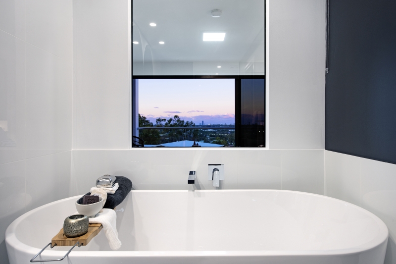 - Bathrooms include modern free standing baths with floor to ceiling