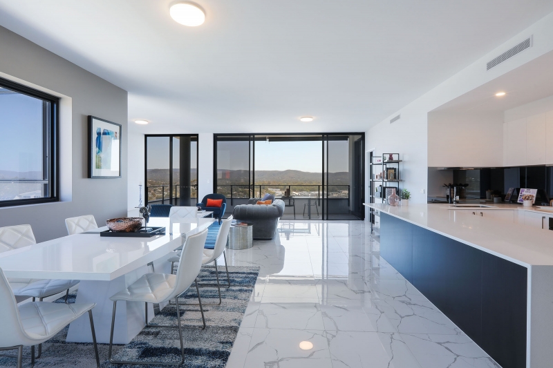 Ready to move in, Lot 51 has 3 bedrooms, 2 bathrooms and a large, open plan living area. Take advantage of the elevated position of this 5th floor apartment and spend warm summer nights on the balcony taking in the sparkle of lights on the mountain ranges. Your new home has a designer kitchen with European appliances, tiled floors to living areas and high quality interior design.