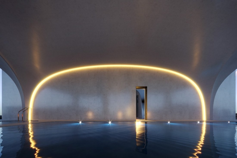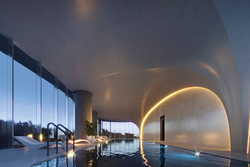 Premium resident amenities include a dedicated concierge service, executive lounge, swimming pool, spa, gym, sauna and steam room, and treatment rooms