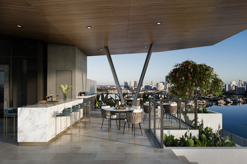 Residential facilities include roof top BBQs, lawns, stunning pool gym